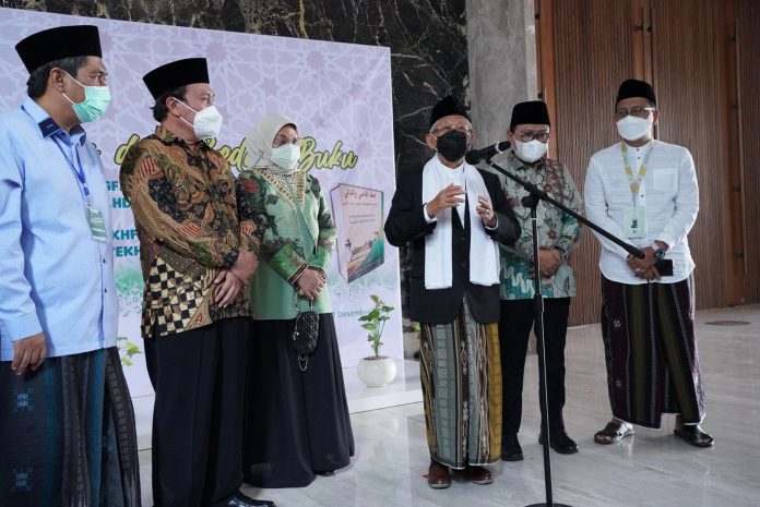 SuaraPemerintah.ID – Usai menjadi pembicara kunci pada peluncuran Buku Historiografi Khittah dan Politik Nahdlatul Ulama karya Ahmad Qoso serta Kitab Tukhfatul Qosi Waddani, Biografi Syekh Nawawi Al Bantani karya K.H. Zulfa Mustafa, Wakil Presiden (Wapres) K.H. Ma’ruf Amin ditanya pandangannya oleh awak media terkait kriteria seorang _Rais ‘Aam_ Nahdlatul Ulama (NU).