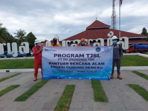 Usai menyerahkan bantuan tersebut, pada Senin Pagi (06/12) Tim PTPP bergerak untuk menyerahkan bantuan kepada Posko Pendopo Wira Arja di Kantor Kabupaten Lumajang dan kepada Badan Penanggulangan Bencana Daerah (“BPBD”) Lumajang untuk diserahkan langsung ke Desa Terdampak Desa Jarit di Kecamatan Candipuro Kabupaten Lumajang.