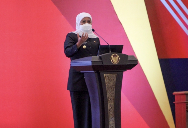 Gubernur Jatim dalam kesempatan itu mengajak seluruh masyarakat meningkatkan kedisiplinan protokol kesehatan agar tidak terjadi lonjakan puncak Covid-19 varian Omicron sekitar Maret 2022.