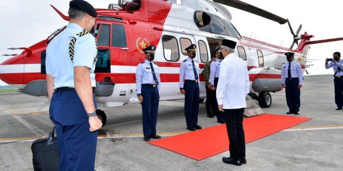 Sekitar pukul 07.45 WIB, Wapres bersama rombongan terbatas tiba di Helipad Lapangan Srikandi, Tempeh, Kabupaten Lumajang disambut oleh Kepala Badan Nasional Penanggulangan Bencana Suharyanto dan Bupati Lumajang Thoriqul Haq.