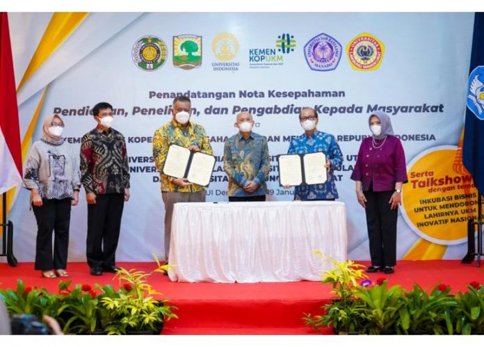 SuaraPemerintah.ID –Â Kementerian Koperasi dan UKM (KemenKopUKM) melakukan penandatanganan nota kesepahaman bersama Universitas Indonesia, Universitas Sumatera Utara, Universitas Andalas, Universitas Sam Ratulangi, dan Universitas Lambung Mangkurat agar dapat menciptakan entrepreneur baru yang dapat memperkuat ekonomi dan menciptakan lapangan kerja.