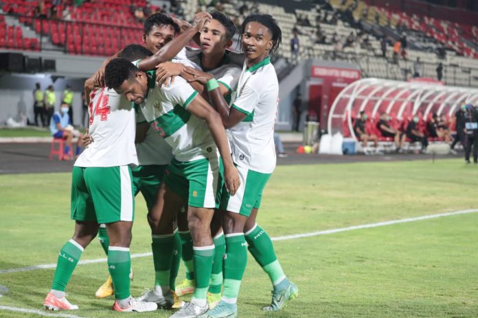 Dari babak pertama dimulai timnas Indonesia telah menekan pertahanan Timor Leste. Hasilnya di menit keenam, Garuda Muda berhasil membobol pertahanan Timor Leste melalui tendangan Terens Owang Priska Puhiri.