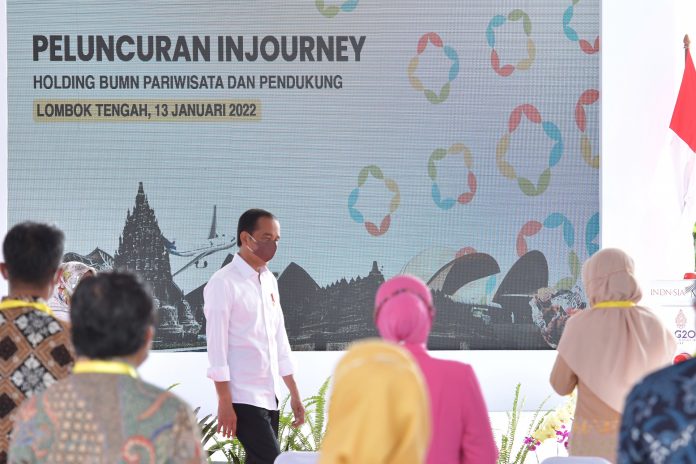 SuaraPemerintah.ID – Presiden RI Joko Widodo (Jokowi) luncurkan Holding BUMN Pariwisata dan Pendukung. Peluncuran induk usaha ini diberi nama Injourney dilakukan di Kawasan Ekonomi Khusus (KEK) Kuta Mandalika, Kabupaten Lombok Tengah, Nusa Tenggara Barat (NTB), Kamis (13/01/22).