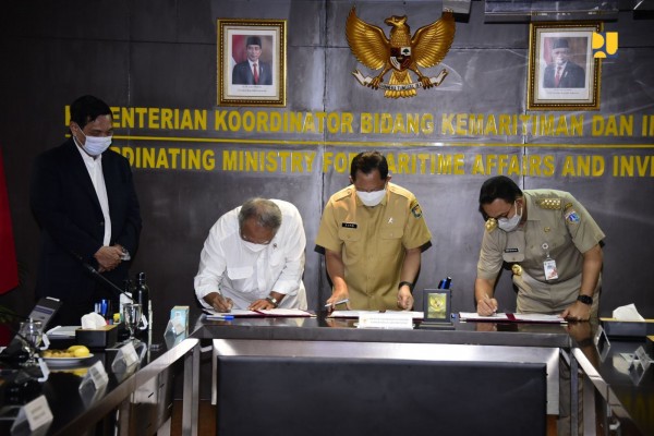 Kolaborasi pencegahan land subsidence dan pemenuhan kebutuhan air perpipaan ini dilakukan Kementerian PUPR bersama Kementerian Dalam Negeri dan Pemerintah Provinsi DKI Jakarta melalui penandatanganan Nota Kesepakatan (MoU) “Sinergi Dan Dukungan Penyelenggaraan Sistem Penyediaan Air Minum Di Provinsi Daerah Khusus Ibukota Jakarta” yang disaksikan oleh Menteri Koordinator Maritim dan Investasi (Menko Marves) Luhut B. Pandjaitan di Kantor Kemenko Marves, Senin (3/1/2022).