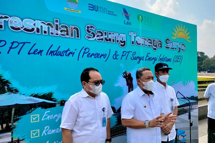 SuaraPemerintah.ID – Plt Walikota Bandung Yana Mulyana bersama Direktur Keuangan dan SDM PT Len Industri (Persero) Indarto Pamoengkas dan Direktur Utama PT SEI Bambang Iswanto meresmikan 5 (lima) unit saung tenaga surya yang dipasang di Lapangan Tegalega Kota Bandung pada hari Rabu (19/01).