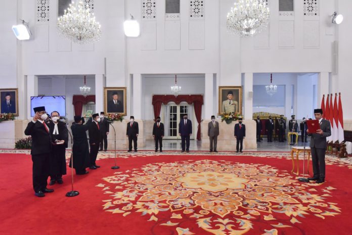 Pelantikan kemudian diakhiri dengan pemberian ucapan selamat yang didahului oleh Presiden Jokowi dan Wakil Presiden Ma’ruf Amin.