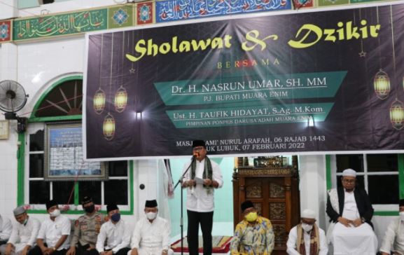 Ajakan itu disampaikan HNU saat menghadiri salawat dan dzikir bersama. Di Masjid Jami’ Nurul Arafah Desa Teluk Lubuk, Kecamatan Belimbing, Senin (07/02) malam yang mana Turut dihadiri oleh Wakil Ketua DPRD Muara Enim Hadiono.