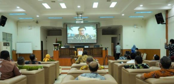 Turut hadir pagi itu secara virtual melalui video conference di Ruang Rapat Pangripta Nusantara Bappeda Muara Enim, Pj Sekda Muara Enim beserta para Kepala Perangkat Daerah Lingkup Pemkab. Muara Enim.
