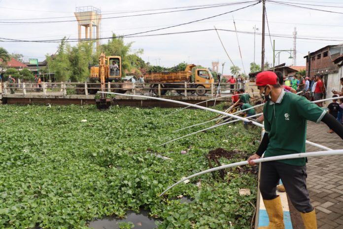 SuaraPemerintah.ID –Â Walikota Pekalongan, HA Afzan Arslan Djunaid SE bersama warga Kelurahan Tirto Kecamatan Pekalongan Barat, anggota TNI Kodim 0710, Babinsa dan Bhabinkamtibmas Kelurahan Tirto gotong royong membersihkan eceng gondok di sungai Meduri di Wilayah RT 03 RW 04 Kelurahan Tirto, Jumat (25/2/22).