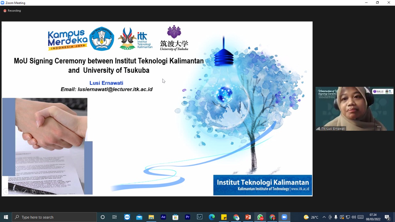 SuaraPemerintah.ID – Institut Teknologi Kalimantan pada (Selasa, 08/03/2022) melakukan MoU Signing Ceremony ITK and University of Tsukuba. Kegiatan ini merupakan kerja sama penelitian dan riset serta mendukung salah satu tri dharma perguruan tinggi.