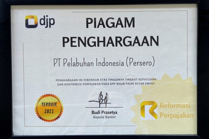 SuaraPemerintah.ID – Sebagai BUMN yang memiliki kepatuhan yang tinggi dan memberikan kontribusi perpajakan, PT Pelabuhan Indonesia (Persero) atau Pelindo meraih penghargaan dari Kantor Pelayanan Pajak (KPP) Wajib Pajak Besar Empat pada Kamis (17/3) lalu di Labuan Bajo. Dengan penghargaan ini, Pelindo akan mendapatkan manfaat berupa kemudahan dalam mendapatkan fasilitas-fasilitas perpajakan dari Direktorat Jenderal Pajak.