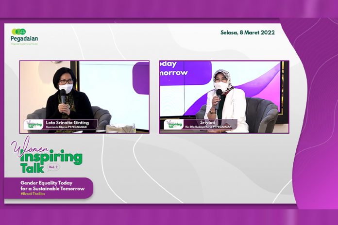 Hal tersebut disampaikan oleh Komisaris Utama PT Pegadaian Loto Srinaita Ginting dalam webinar bertajuk Women Inspiring Talk Volume 2 “Gender Equity Today for Sustainable Tomorrow” #BreakTheBias, dalam rangka merayakan Hari Perempuan Internasional yang jatuh pada 8 Maret 2022.