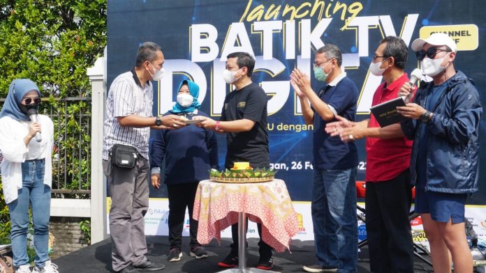 SuaraPemerintah.ID –  Lembaga Penyiaran Publik Lokal (LPPL) Batik TV yang berada di bawah naungan Dinas Komunikasi dan Informatika (Dinkominfo) Kota Pekalongan resmi bertransformasi menjadi Televisi Digital (TV Digital). Launching migrasi siaran LPPL Batik TV dari analog ke digital ini dilakukan secara simbolis dengan pemotongan tumpeng dari Walikota Pekalongan, HA Afzan Arslan Djunaid, SE, kepada Plt Kepala Dinkominfo Kota Pekalongan sekaligus Plt Dewan Pengawas Batik TV, Arif Karyadi di Halaman area Batik TV, Sabtu (26/2/22).