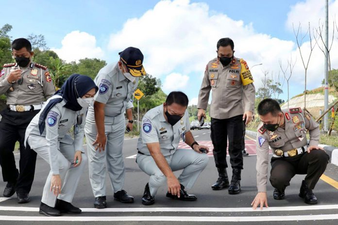 SuaraPemerintah.ID – Dalam menjaga keselamatan masyarakat dalam berlalu lintas, Jasa Raharja terus berupaya meningkatkan kontribusinya dengan melakukan program pencegahan kecelakaan. Terlebih di dalam perhelatan internasional, MotoGP Mandalika, Nusa Tenggara Barat (NTB), Direktur Utama PT Jasa Raharja Rivan Purwantono beserta Direktur Operasional Dewi A. Suzana dan Direktur Hubungan Kelembagaan Munadi Herlambang mendampingi Kepala Korps Lalu Lintas Kepolisian Republik Indonesia (Kakorlantas Polri) Irjen. Pol. Firman Shantyabudi beserta Wakil Kepala Kepala Kepolisian Daerah NTB (Wakapolda NTB) Brigjen. Pol. Ruslan Aspan, Kepala Sub Direktorat Pengawalan dan Patroli Jalan Raya (Kasubditwal & PJR) Korlantas Polri Kombes Pol. Juni melakukan peninjauan hasil pemasangan rambu “Redspot” di Jalan Bypass Bandara Internasional Lombok – Sirkuit Internasional Mandalika, NTB pada Kamis (17/03).