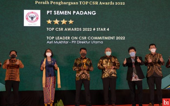 SuaraPemerintah.ID – PT Semen Padang menyabet dua penghargaan pada ajang TOP CSR Awards 2022 dari Majalah Top Business. Kedua penghargaan itu adalah TOP CSR Awards 2022 #Star 5 dan TOP Leader on CSR Commitment 2022 untuk Direktur Utama PT Semen Padang Asri Mukhtar.