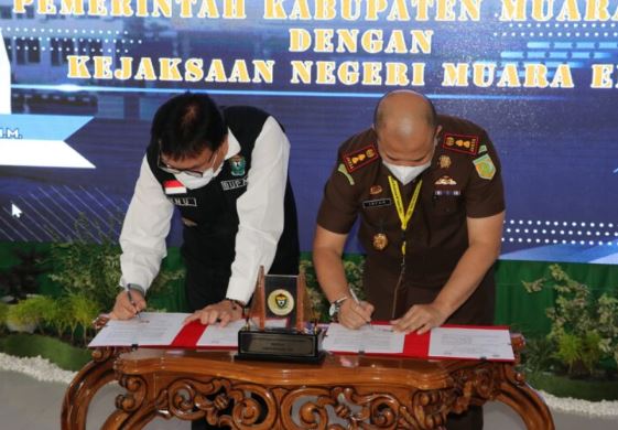 Penandatanganan Nota Kesepahaman langsung dilakukan Penjabat (Pj.) Bupati Muara Enim Dr. Nasrun Umar, SH, MM dan Kepala Kejari Muara Enim Irfan Wibowo, SH dihadapan Forum Komunikasi Pimpinan Daerah (Forkopimda) Muara Enim atau yang mewakili, dan Kepala Organisasi Perangkat Daerah Pemkab Muara Enim.