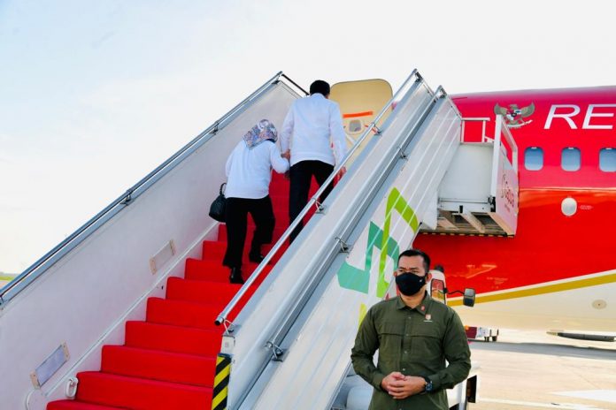 SuaraPemerintah.ID –Â Presiden RI Joko Widodo (Jokowi) didampingi Ibu Iriana Joko Widodo, Kamis (07/04/22) pagi, bertolak menuju Provinsi Jambi dalam rangka kunjungan kerja. Kepala Negara bersama rombongan terbatas lepas landas dengan menggunakan Pesawat Kepresidenan Indonesia-1 melalui Bandara Internasional Soekarno-Hatta, Tangerang, Banten, sekitar pukul 07.00 WIB.