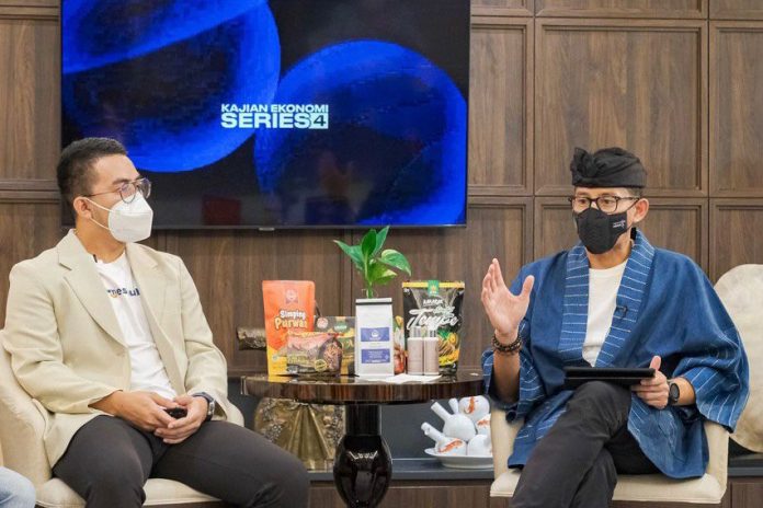 Menparekraf Sandiaga Uno dalam diskusi “Kajian Ekonomi Series 4: #Inisaatnya UMKM dan Anak Muda Berdaya Saing Global” yang disiarkan secara daring, Selasa (26/4/2022), mengatakan, di tengah masa-masa sulit akibat pandemi COVID-19 yang dihadapi Indonesia dan dunia saat ini, para pelaku UMKM tidak boleh menyerah terhadap keadaan.