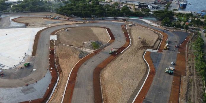 “Sekarang yang sedang dalam proses pembangunan adalah, seperti kata Pak Presiden, paddock, grand stand, kemudian juga pagar. Nanti di atas beton-beton ini akan ada pagar yang itu untuk pelindung. Nah itu semua yang nanti akan dikerjakan, sama persiapan untuk fasilitas bagi tamu-tamu yang menggunakan holding di sebelahnya. Tapi secara umum treknya sudah 100 persen selesai,” ucap Anies.
