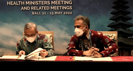 SuaraPemerintah.ID –Â Sekretaris Jenderal Kementerian Kesehatan (Kemenkes) RI Kunta Wibawa Dasa Nugraha bersama WHO Representative in Indonesia Dr. N. Paranietharan menyepakati kerja sama hibah bidang kesehatan untuk Grant Agreement Biennium 2022-2023 di Hotel Conrad, Bali, pada Sabtu (14/5). Kesepakatan itu dilakukan di sela agenda pertemuan menteri kesehatan se-ASEAN (15th AHMM).