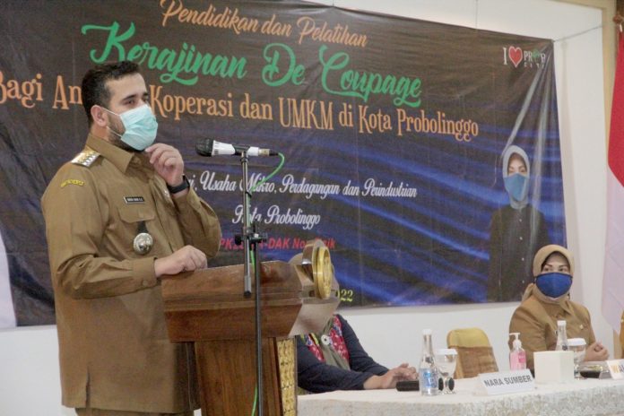 SuaraPemerintah.ID –Â Mendukung pemberdayaan ekonomi masyarakat, Wali Kota Probolinggo, Habib Hadi Zainal Abidin membuka pendidikan dan pelatihan kerajinan Decoupage bagi anggota koperasi dan UMKM Kota Probolinggo di Ombass Kafe Resto, Senin (23/5/2022) Pagi.