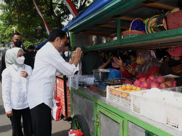 “Bantuan untuk pedagang, UMKM, untuk PKL di Pasar Mojosongo, Pasar Gede, Pasar Gading, dan juga Pasar Harjodaksino, dan juga untuk para seniman. Dan juga ada tambahan modal untuk mendorong ekonomi pulih kembali,” ucap Presiden di Pasar Mojosongo.