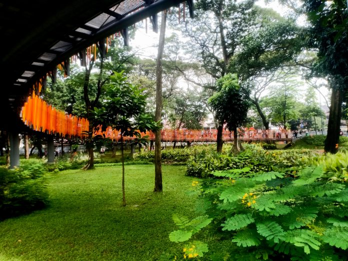 Tebet Eco Park merupakan ruang terbuka hijau yang dikelilingi pohon dan taman sehingga suasana disini sejuk.
