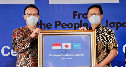 ”Terima kasih kepada Jepang dan UNICEF yang telah mendukung kami. Selain cold chain equipment, kami juga mendapat dukungan vaksin dari Jepang. Sudah hampir 7 Juta vaksin telah disumbangkan Jepang ke Indonesia dan itu membantu percepatan program vaksinasi kami,” kata Menkes Budi.