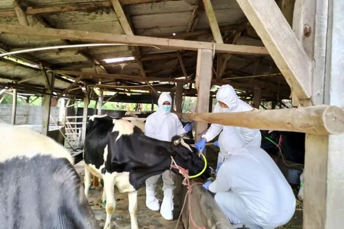 “Sementara dengan keterbatasan tenaga menteri kesehatan dokter hewan yang ada, kita terus turun untuk memeriksa sapi-sapi dan memberikan vitamin,” jelasnya.