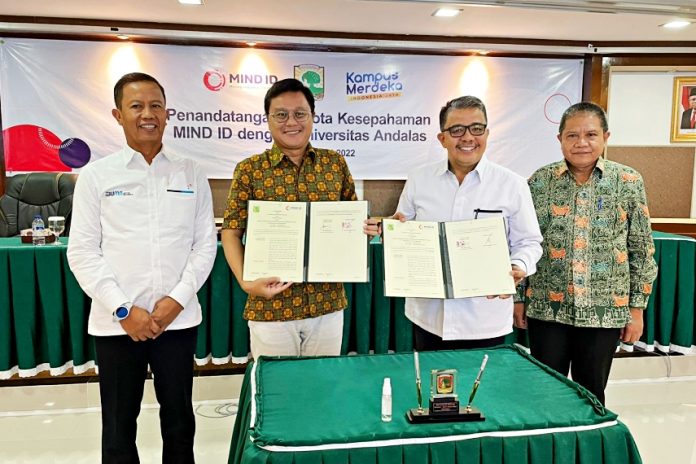 SuaraPemerintah.ID – BUMN Holding Industri Pertambangan MIND ID, atau Mining Industry Indonesia, yang beranggotakan di antaranya PT Aneka Tambang Tbk, PT Bukit Asam Tbk, PT Freeport Indonesia, PT Inalum (Persero) dan PT Timah Tbk, bersama Universitas Andalas menandatangani nota kesepahaman (MoU) tentang Pendidikan, Penelitian dan Pengabdian Masyarakat serta pengembangan di Bidang Pertambangan, Sosial dan Lingkungan.