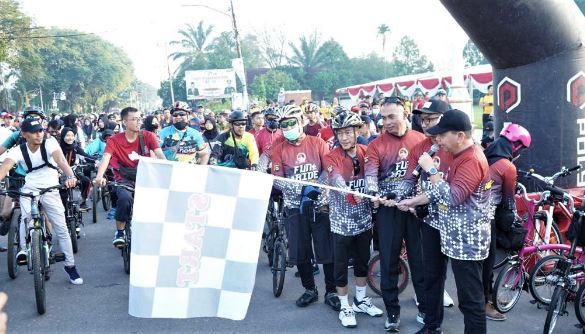 SuaraPemerintah.ID – Dalam rangka memperingati Hari Ulang Tahun (HUT) Bhayangkara ke-76 tahun, ribuan masyarakat kabupaten Muara Enim ikut gowes Fun Bike bersama Polres Muara Enim, Minggu (19/6) di Lapangan Merdeka Muara Enim dengan rute mengelilingi wilayah kota Muara Enim.