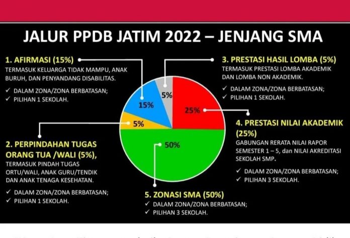 Adapun rincian jalur PPDB Jatim 2022 untuk jenjang SMA, adalah sebagai berikut: