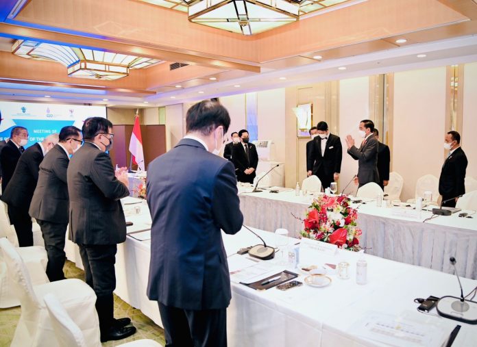 Turut mendampingi Presiden Jokowi dalam pertemuan dengan para CEO yaitu Menteri Koordinator Bidang Perekonomian Airlangga Hartarto, Menteri Koordinator Bidang Kemaritiman dan Investasi Luhur Binsar Pandjaitan, Menteri Luar Negeri Retno LP Marsudi, Menteri Investasi/Kepala BKPM Bahlil Lahadalia, Menteri Badan Usaha Milik Negara (BUMN) Erick Thohir, Duta Besar RI untuk Jepang Heri Akhmadi, dan Ketua Umum Kamar Dagang dan Industri Indonesia (Kadin) Arsjad Rasjid.