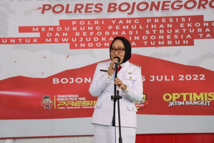SuaraPemerintah.ID –Â Bupati Bojonegoro Anna Muawanah mengapresiasi kinerja Polres Bojonegoro, terutama dalam penanganan kasus covid-19. Hal itu disampaikan Bupati Anna saat acara tasyakuran Hari Bhayangkara ke-76 di Gedung Olahraga Polres Bojonegoro, Selasa (5/7/2022).