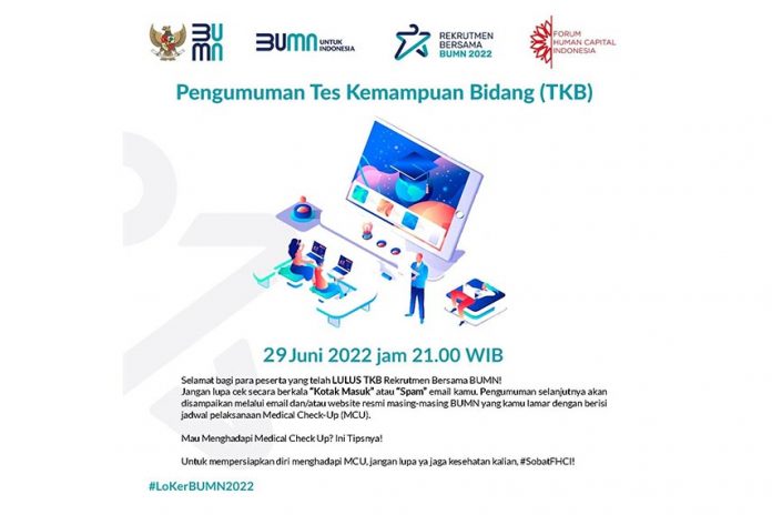 SuaraPemerintah.ID – Hasil Tes Kompetensi Bidang (TKB) pada Rekrutmen Bersama Badan Usaha Milik Negara atau BUMN 2022 telah diumumkan, Rabu (29/6/22) malam. Peserta dapat melihat hasil TKB di laman kotak masuk e-mail dan situs resmi masing-masing BUMN yang dituju. Turut berkontribusi membuka peluang berkarya anak bangsa, PT Brantas Abipraya (Persero) yang merupakan BUMN konstruksi terunggul dalam pembangunan infrastruktur air ini juga membuka kesempatan untuk memajukan negeri lewat Brantas Abipraya.