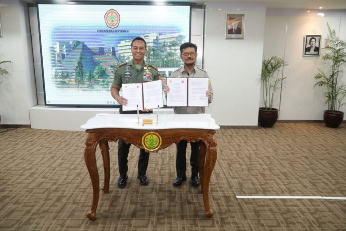 SuaraPemerintah.ID –Â Mentan SYL bersama Panglima TNI, Jenderal Andika Perkasa sepakat untuk memperkuat sektor pertanian Indonesia melalui kerjasama perluasan lahan dan pengembangan peternakan. Diantaranya percepatan swasembada gula konsumsi, program desa koorporasi sapi dan pemberantasan wabah PMK serta penyakit menular lainya.