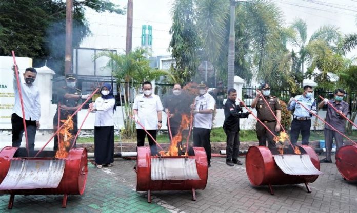 Pj Bupati Muara Enim Bersama Forkopimda Musnahkan BB Senilai Ratusan Juta Rupiah