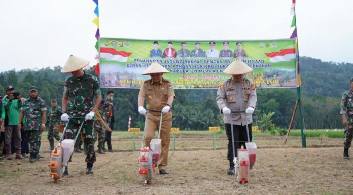 Lebih lanjut dirinya berpesan untuk memaknai kegiatan ini sebagai bentuk dukungan dan kemanunggalan TNI dengan masyarakat, khususnya Korem 044 Garuda Dempo melalui Kodim 0404 Muara Enim dalam mewujudkan ketahanan dan kemandirian pangan di Kabupaten Muara Enim, seiring dengan program Gubernur Sumatera Selatan yang mencanangkan ‘Sumsel Mandiri Pangan’ khususnya pengembangan komoditas jagung seluas 200.000 hektar di Provinsi Sumatera Selatan’ dan ‘Muara Enim sebagai Kawasan Food Estate ‘Lumbung Pangan Provinsi Sumatera Selatan.