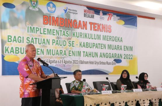 SuaraPemerintah.ID – Sebanyak 100 orang guru Pendidikan Anak Usia Dini (PAUD) se – Kabupaten Muara Enim mengikuti Bimbingan teknis (Bimtek) kurikulum Platform Merdeka Mengajar (PMM) 4 – 6 Agustus 2022 di Griya Hotel Sintesa yang dibuka Penjabat (Pj.) Sekda Muara Enim Riswandar.