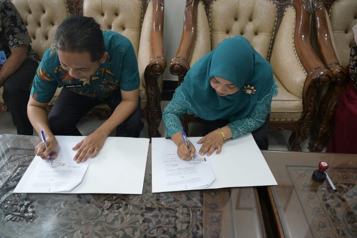 Penandatanganan MoU menghadirkan Ketua TP PKK Kota Sabang Mita Andriani dan Ari Windani sebagai saksi.