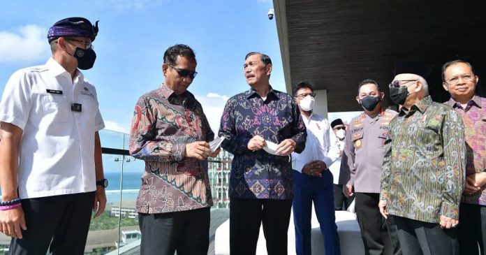 Turut mendampingi dalam peninjauan ini antara lain Menteri Koordinator Bidang Politik, Hukum, dan Keamanan Mahfud MD, Menteri Koordinator Bidang Kemaritiman dan Investasi Luhut Binsar Pandjaitan, Menteri Luar Negeri Retno LP Marsudi, Menteri Komunikasi dan Informatika Johnny G. Plate, Menteri Pariwisata dan Ekonomi Kreatif Sandiaga Uno, Kapolri Jenderal Listyo Sigit Prabowo, serta Gubernur Bali Wayan Koster.