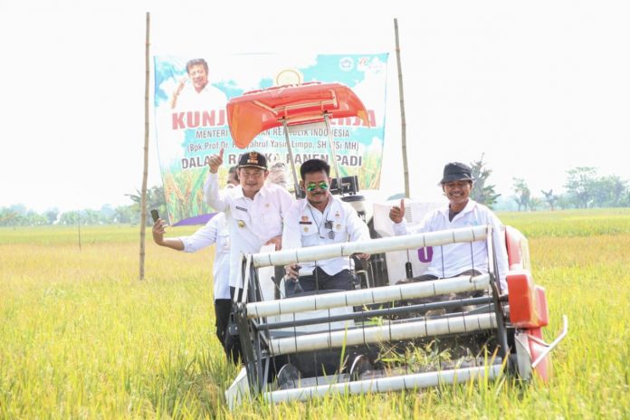 Berkomitmen memaksimalkan potensi pertanian, setelah melakukan panen raya sorgum. Bupati Lamongan dan juga Menteri Pertanian RI mengikuti tradisi “Miwiti” untuk penanda panen padi seluas 250 ha di Desa Kebalanpelang Kecamatan Babat Lamongan dan melakukan panen langsung menggunakan kecanggihan teknologi combine.