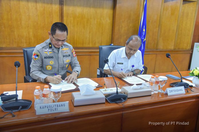 SuaraPemerintah.ID – Direktur Teknologi dan Pengembangan PT Pindad, Sigit P. Santosa dan Kepala Pusat Penelitian & Pengembangan (Kapuslitbang) Polri, Brigjen Pol Iswyoto Agoeng Lesmana Doeta menandatangani Perjanjian Kerja Sama (PKS) terkait Penelitian dan Pengembangan Produk serta Pemanfaatan Sumber Daya pada 8 Agustus 2022 di Auditorium Gd. Direktorat PT Pindad, Bandung. Penandatanganan PKS disaksikan oleh VP Penjaminan Mutu & K3LH, Prima Kharisma beserta jajaran, Kabag Labtekpol Kombes Pol Pratikno, dan Analis Puslitbang Polri Kombes Pol Endro Sulaksono.