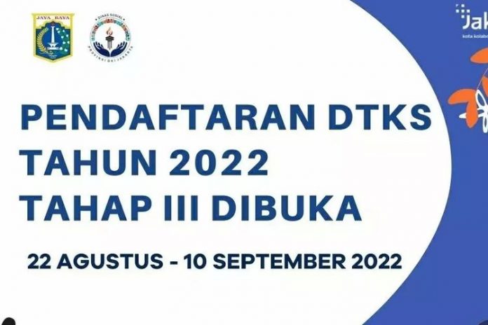 SuaraPemerintah.ID – Dinas Sosial (Dinsos) DKI Jakarta membuka pendaftaran Data Terpadu Kesejahteraan Sosial atau DTKS Tahap III Tahun 2022 mulai 22 Agustus-10 September 2022.