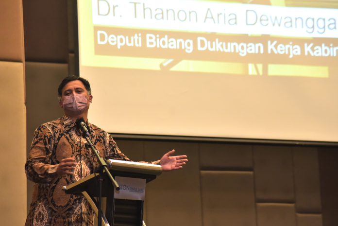 Deputi Bidang Dukungan Kerja Kabinet (DKK), Setkab, Thanon Aria Dewangga menyampaikan, diskusi ini merupakan ajang berbagai pengetahuan, pengalaman, dan keterampilan sehingga insan humas pemerintah dapat mengoptimalkan pemanfaatan siniar, yang dimiliki Setkab dan juga sejumlah instansi pemerintah lainnya, sebagai sarana komunikasi publik pemerintah.