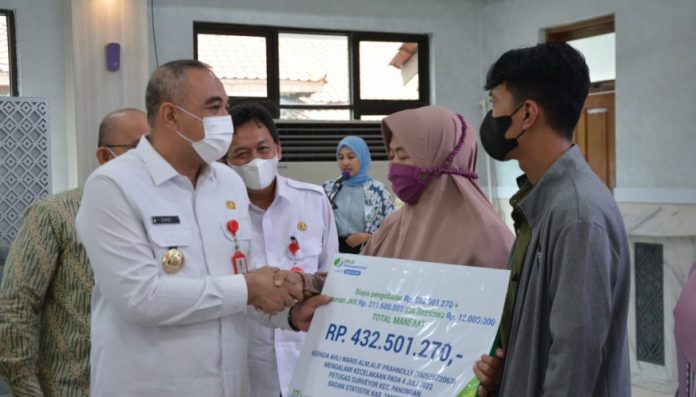 Penyerahan jaminan kematian atau santunan tersebut dilakukan oleh Bupati Tangerang sekaligus menandatangani perjanjian kerja sama dengan Badan Pusat Statistik (BPS) Kabupaten Tangerang. Bupati mengapresiasi BPJS Ketenagakerjaan yang memberikan santunan kepada para ahli waris dan penandatanganan kerja sama dengan BPS Kabupaten Tangerang.