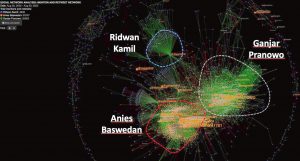 Kecuali besarnya volume perbincangan, uniknya, karakteristik pendukung militan juga dimiliki Anies dan Ganjar. Aliran narasi untuk keduanya terpantau enerjik, terorganisir, dan fanatik. Dua kelompok ini terdeteksi sensitif dan bahkan saling serang satu sama lain: pendukung Anies versus simpatisan Ganjar.