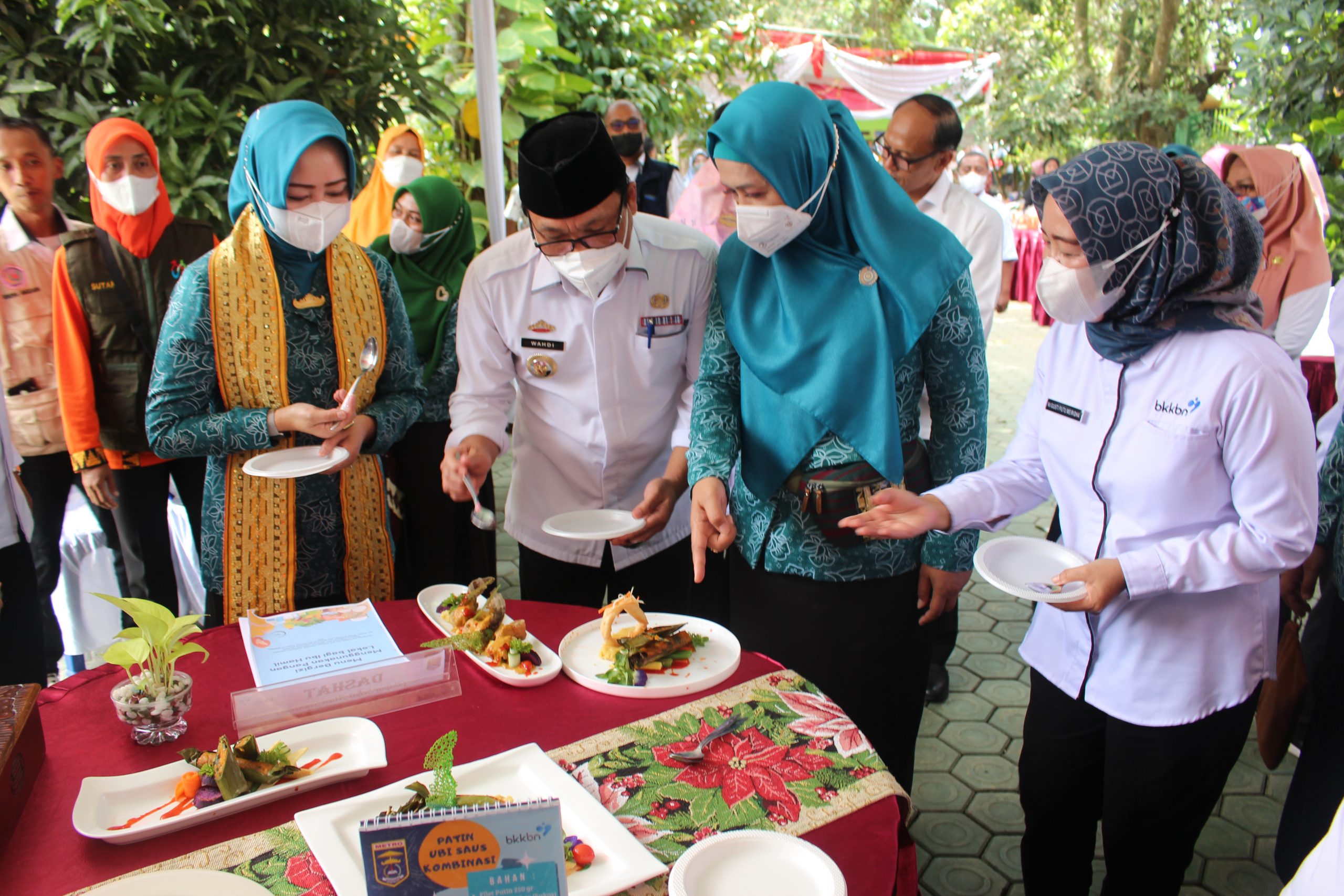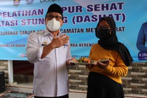 Didampingi oleh Plt Kepala Perwakilan BKKBN Provinsi Lampung, Ni Gusti Putu Meiridha, SE, MM, Walikota Kota Metro beserta jajaran turut menyaksikan proses pengolahan menu DASHAT dan mencicipi menu olahan DASHAT.