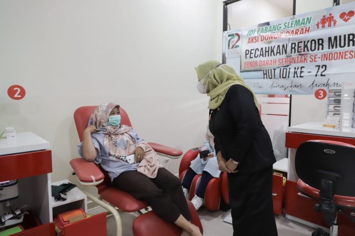 SuaraPemerintah.ID – Bupati Sleman Kustini Sri Purnomo membuka secara resmi penyelenggaraan kegiatan aksi donor darah dalam rangka peringatan HUT Ikatan Dokter Indonesia (IDI) bertempat di Kantor Palang Merah Indonesia (PMI) Kabupaten Sleman, Selasa (25/10).