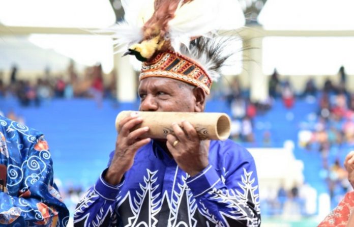 Penutupan KMAN VI disimbolkan dengan pemukulan tifa oleh Bupati Jayapura.